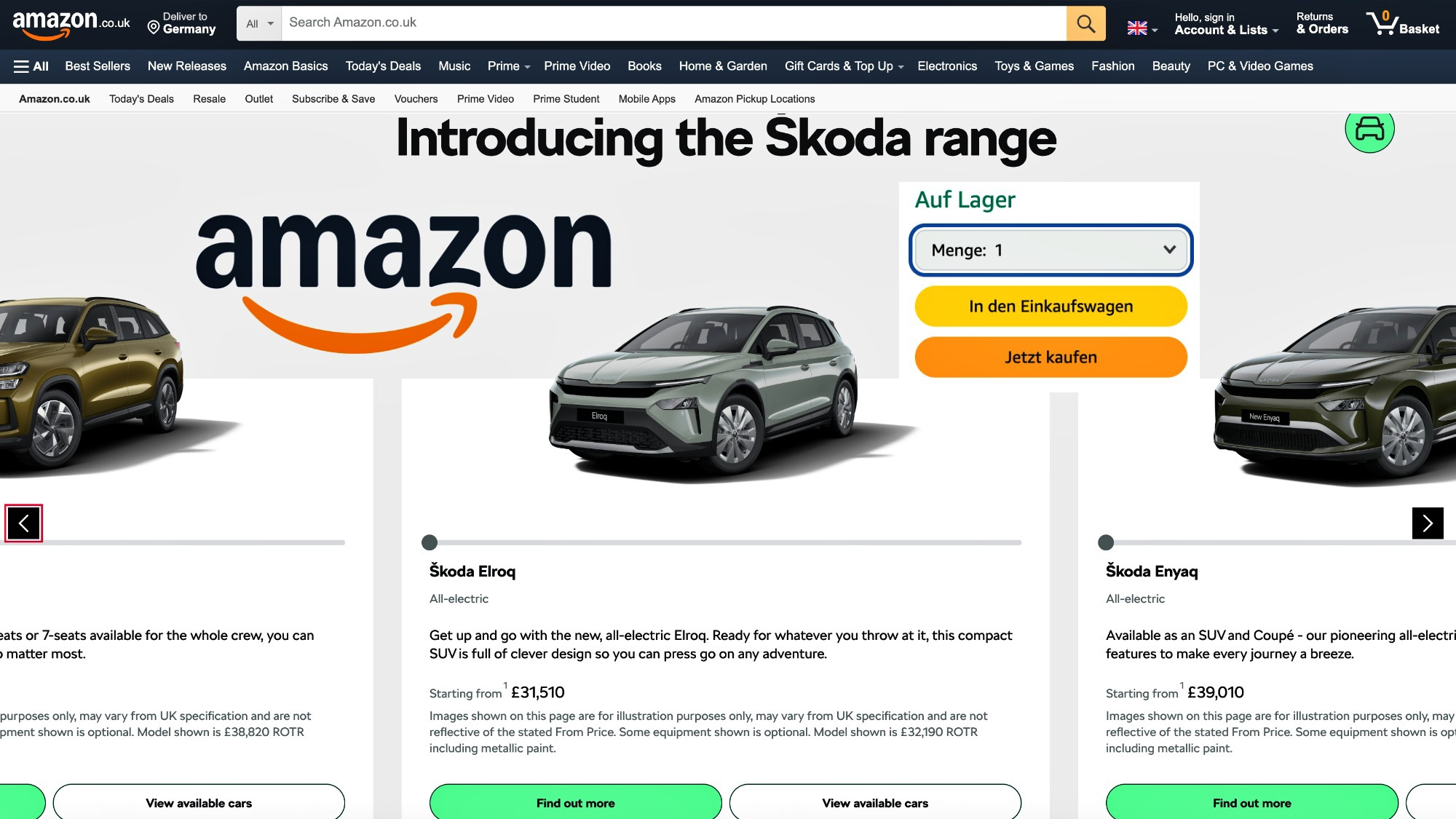 Skodas gibt es jetzt bei Amazon