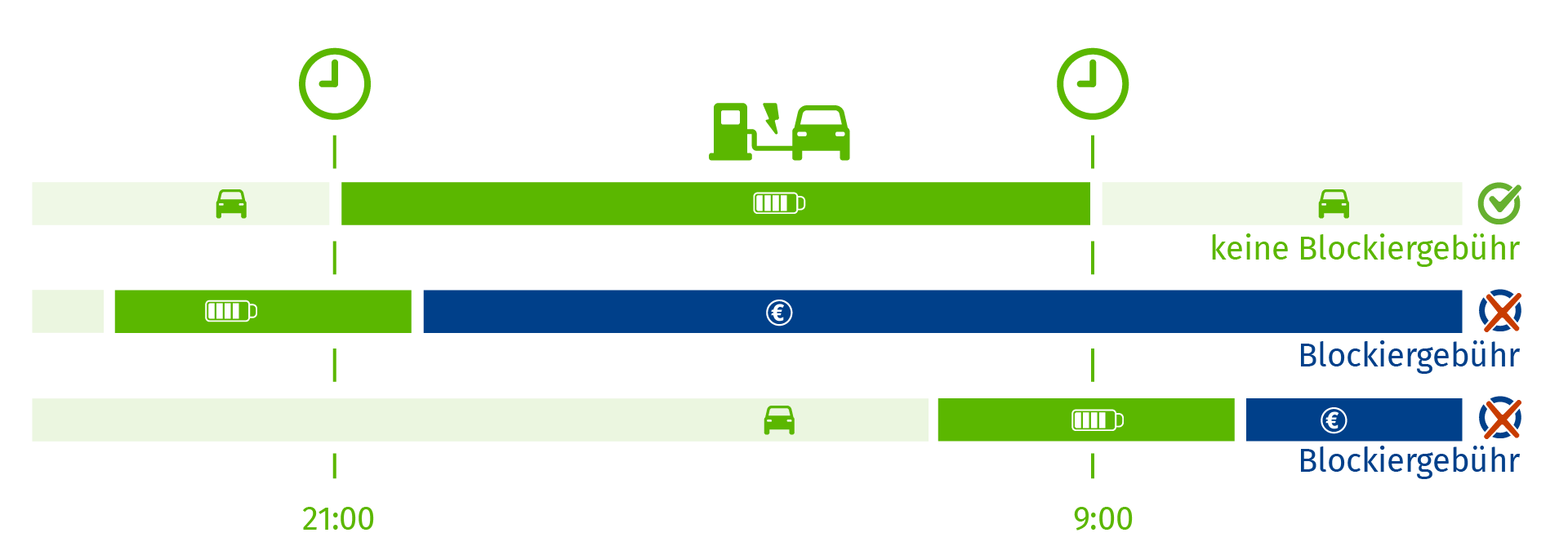 Grundgebühr 4,99 EUR/Monat, AC für 35 Cent und DC für 45 Cent (auch Roaming!). Blockiergebühr ab 4 Stunden, gilt aber nur zwischen 9 und 21 Uhr.