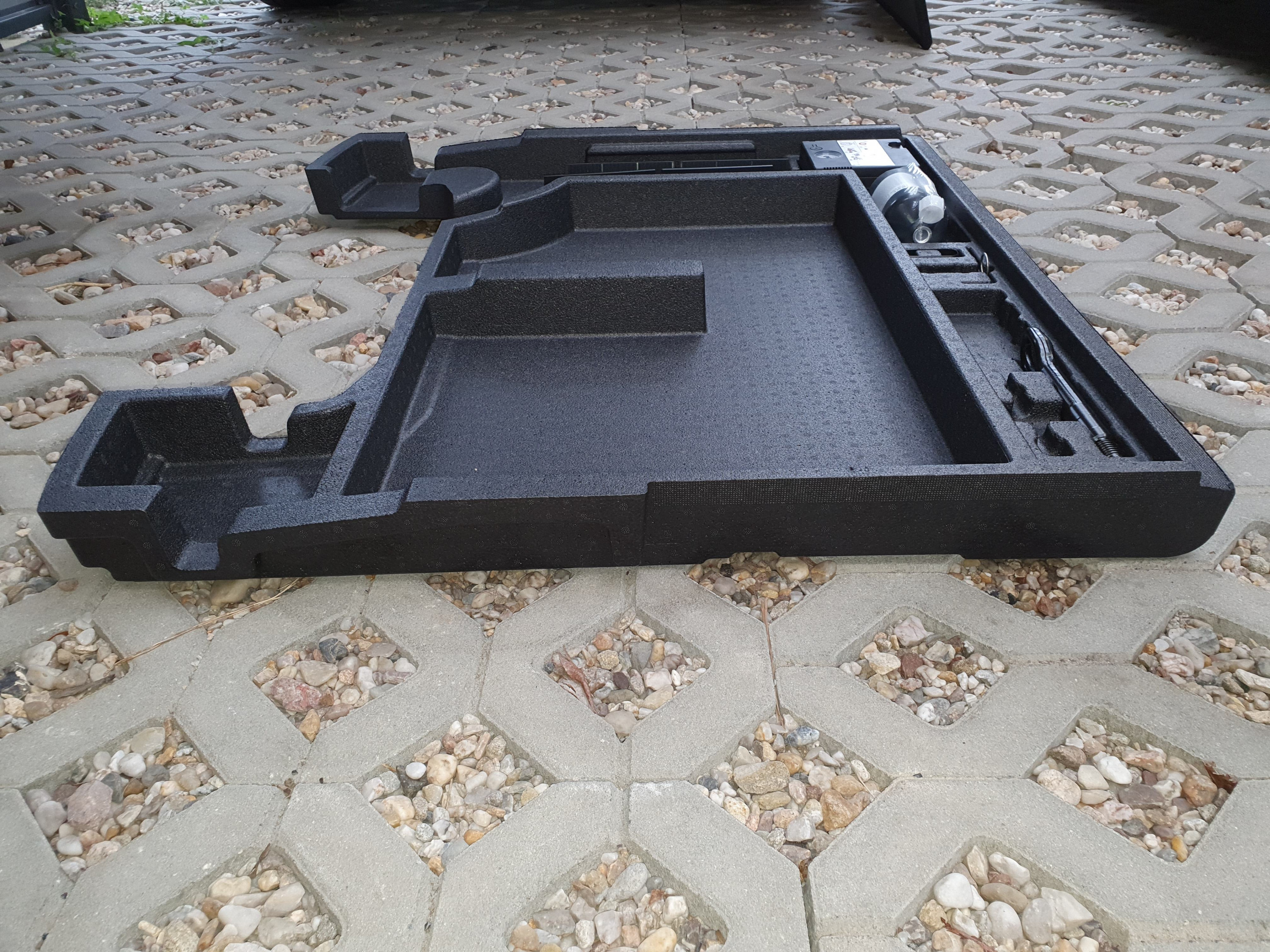 So... ich habe mir jetzt einen maßgeschneiderten Ladeboden gebastelt für den Fall, dass ich mal mehr Tiefe benötige. Ich denke nicht, dass man den normalen Ladeboden nehmen kann und einfach unten einlegen. Wie geschrieben, liegt der ja nur auf den Plastik-Schienen auf, zumal die Höhe hinten und vorn nicht passt.