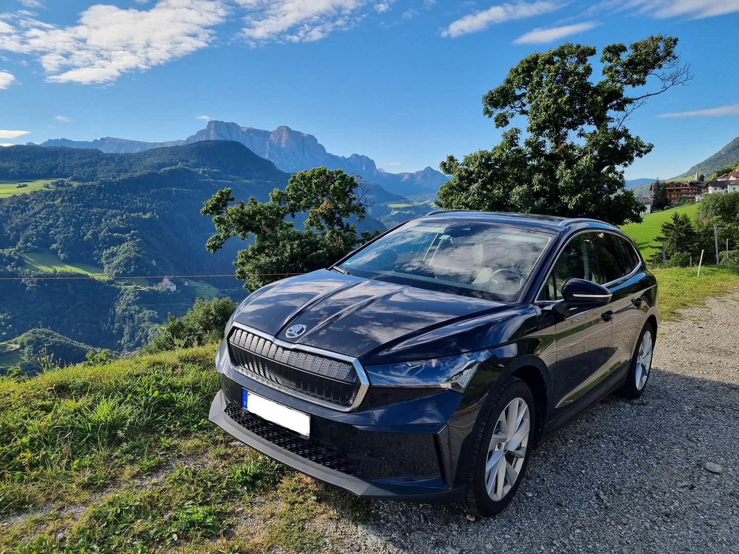 Leider hat das Fahrzeug eine gewisse Geschichte, da es eines der 70.000 Fahrzeuge ist, die 2023 rund um Kassel dem gigantischen Hagelsturm zum Opfer fielen und ein kleines Reh wollte offenbar Selbstmord am Enyaq begehen und sprang mir kurz vor dem Hagelsturm vors Auto. Zu allem Überfluss flog 2x ein kleiner Stein auf die Windschutzscheibe, welche 2023 und nochmal im Sommer 2024 gewechselt wurde.Kurz nach dem Lackieren des Rehschadens (musste 1 Jahr auf den Lackiertermin warten), hat mir in den Alpen ein Bus nur die Wahl zwischen Totalschaden oder Leitplanke gelassen. Der eine Zentimeter der fehlte führte leider zu Kratzern der neu lackierten Beifahrertür und des Kotflügels.