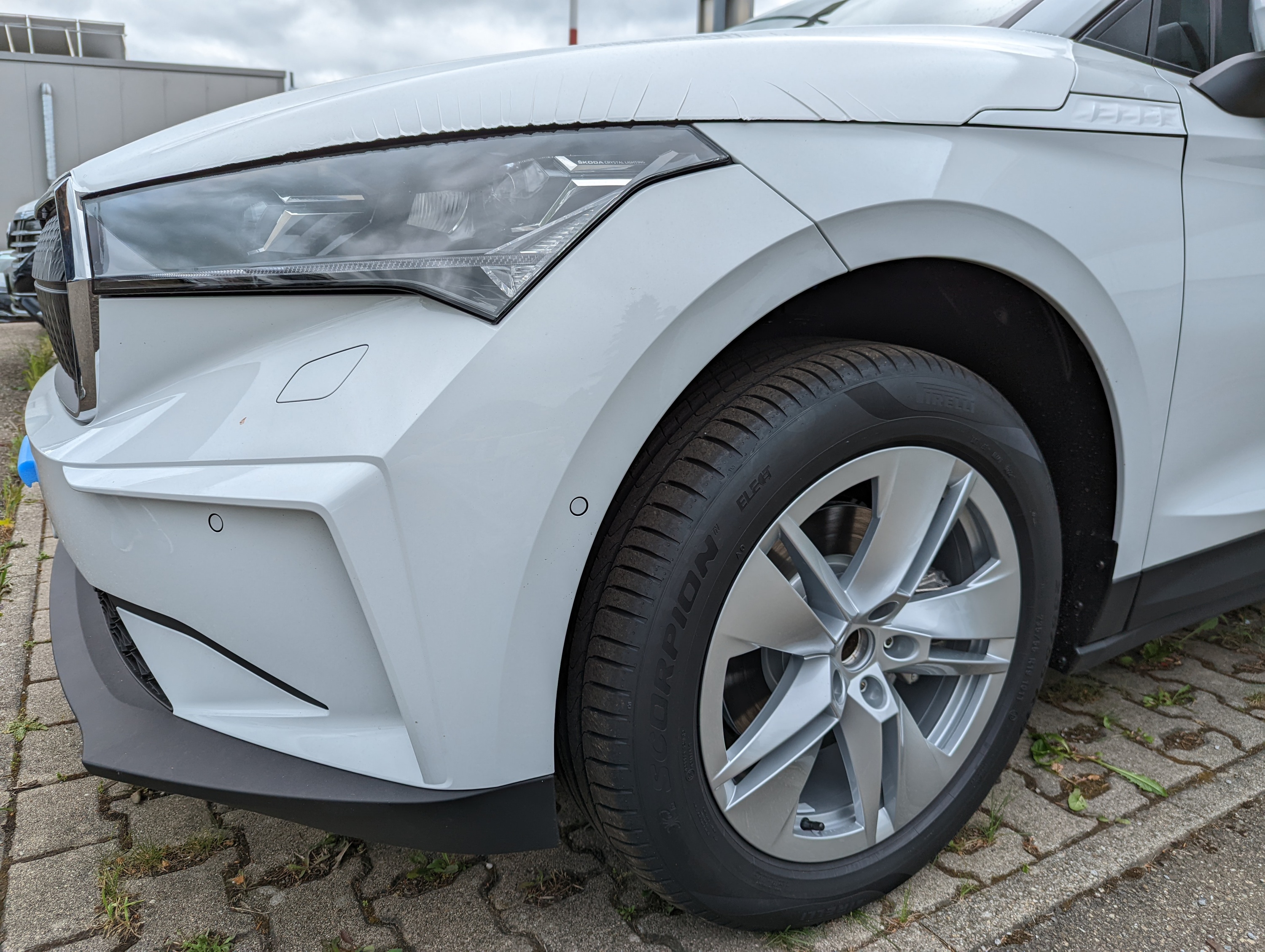 Noch in Folie verpackt, wartet er auf die Aufbereitung und die anschließende Übergabe...Enyaq iV 60 in MoonWhite ...
