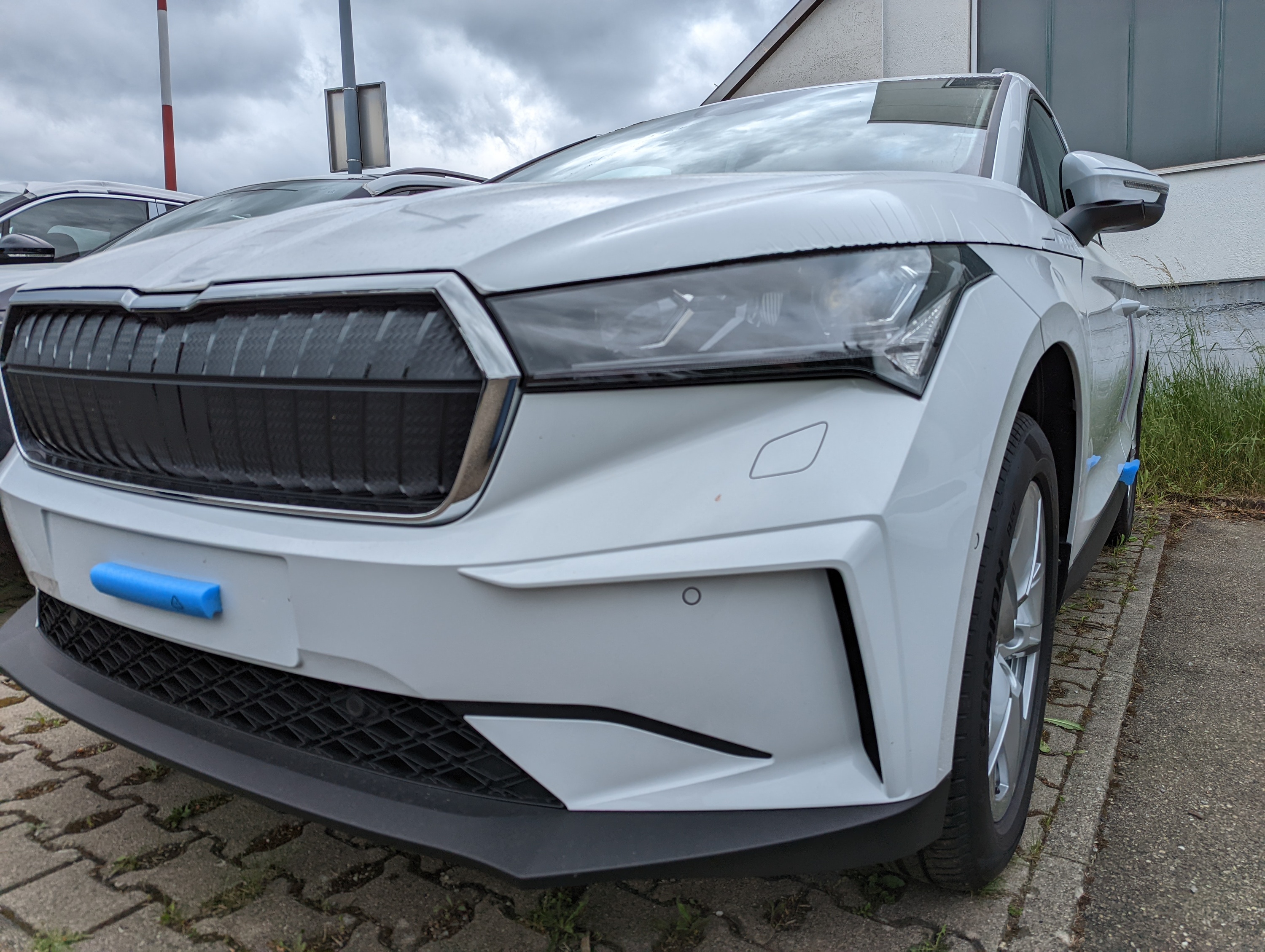 Noch in Folie verpackt, wartet er auf die Aufbereitung und die anschließende Übergabe...Enyaq iV 60 in MoonWhite ...