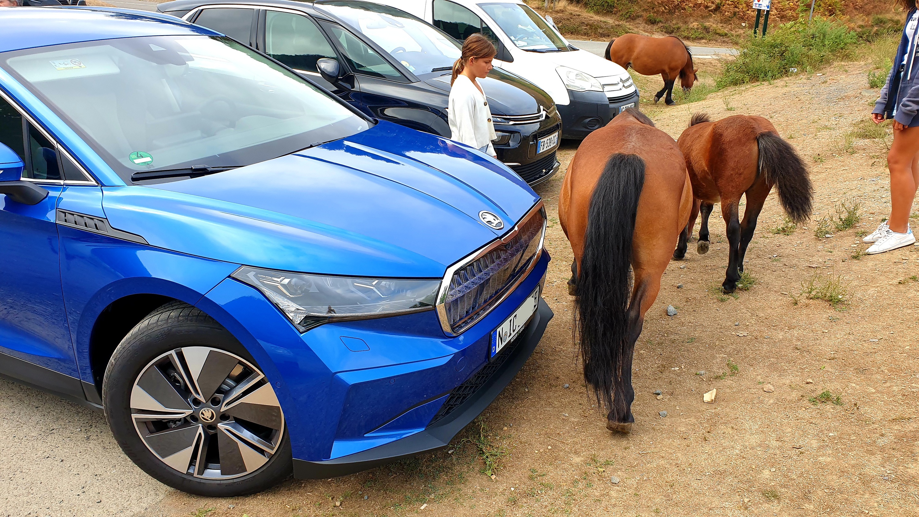 Unterwegs in den Pyrenäen auf einem Parkplatz. Einfach so um die 15 freilaufenden Pferde unterwegs