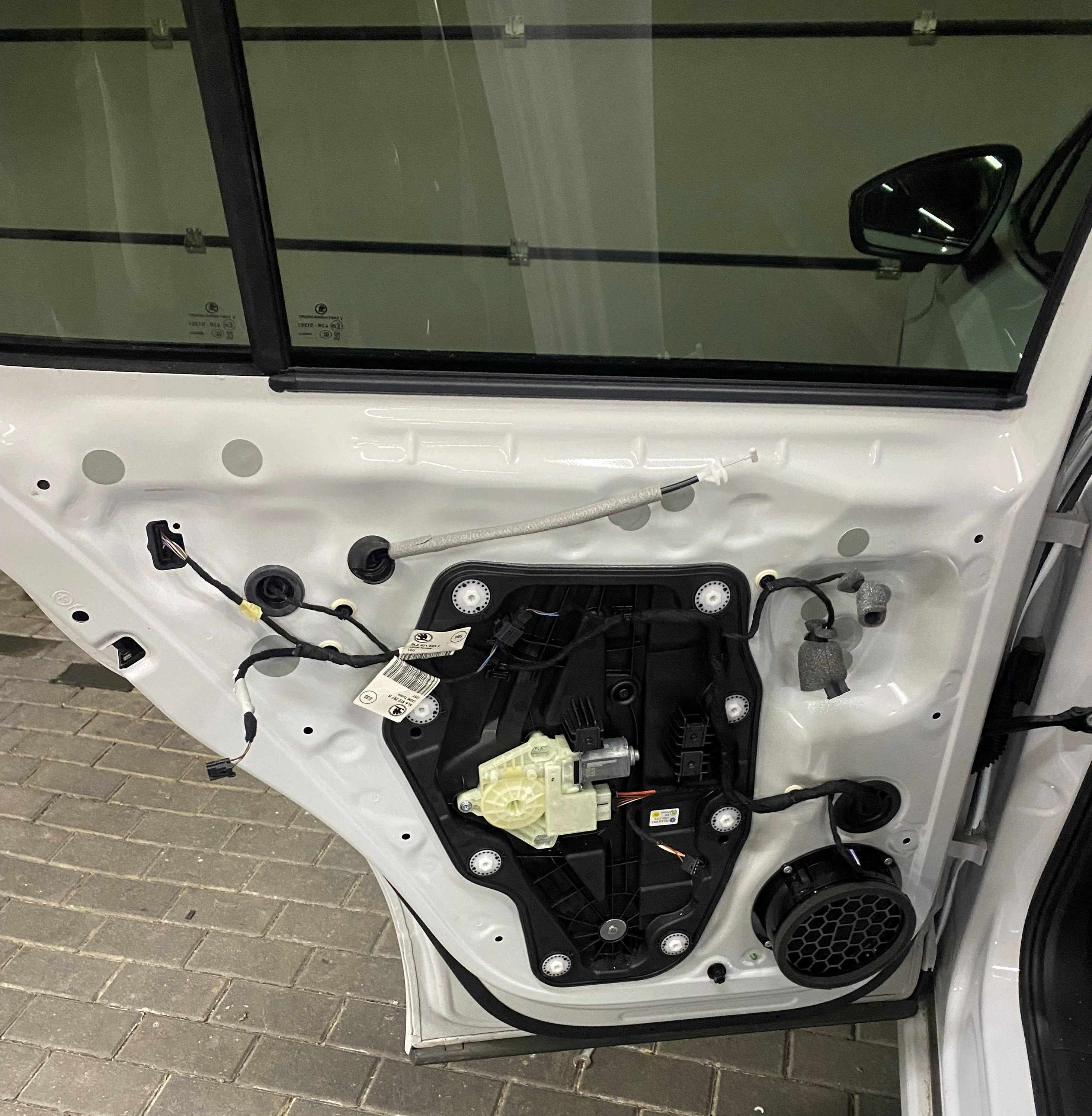 Eigentlich muss man nur die Tür Verkleidungen tauschen. Durch Zufall habe ich in der Bucht 2 Tür Verkleidungen mit Rollo für 160€ bekommen. Aber leider war die leiste in schwarz Glanz und nicht in Carbon Optik. Deshalb musste ich das obere Teil mit dem Rollo austauschen.