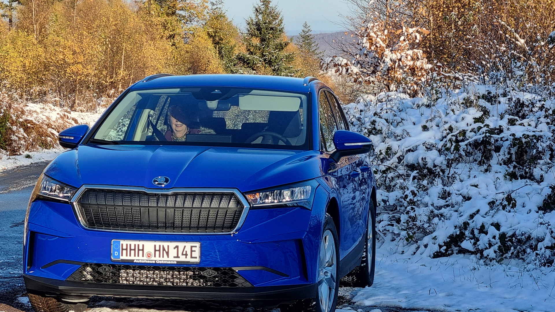 Mit dem Enyaq im Landkreis Göttingen auf dem Weg zum Wanderparkplatz.