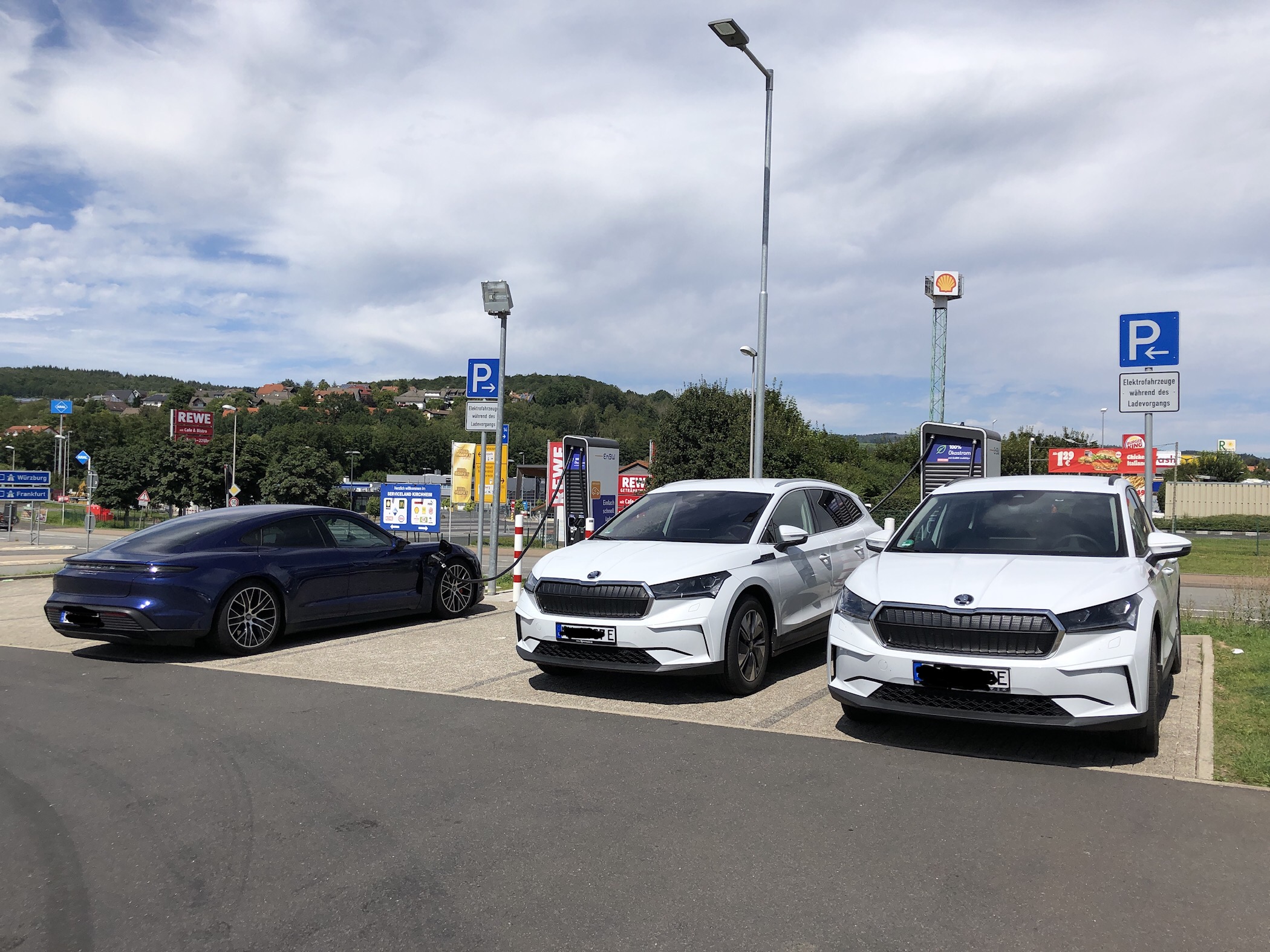 Da schaut man über 800km vergeblich nach einem Artgenossen und dann an der Ladestation, wo sonst ?