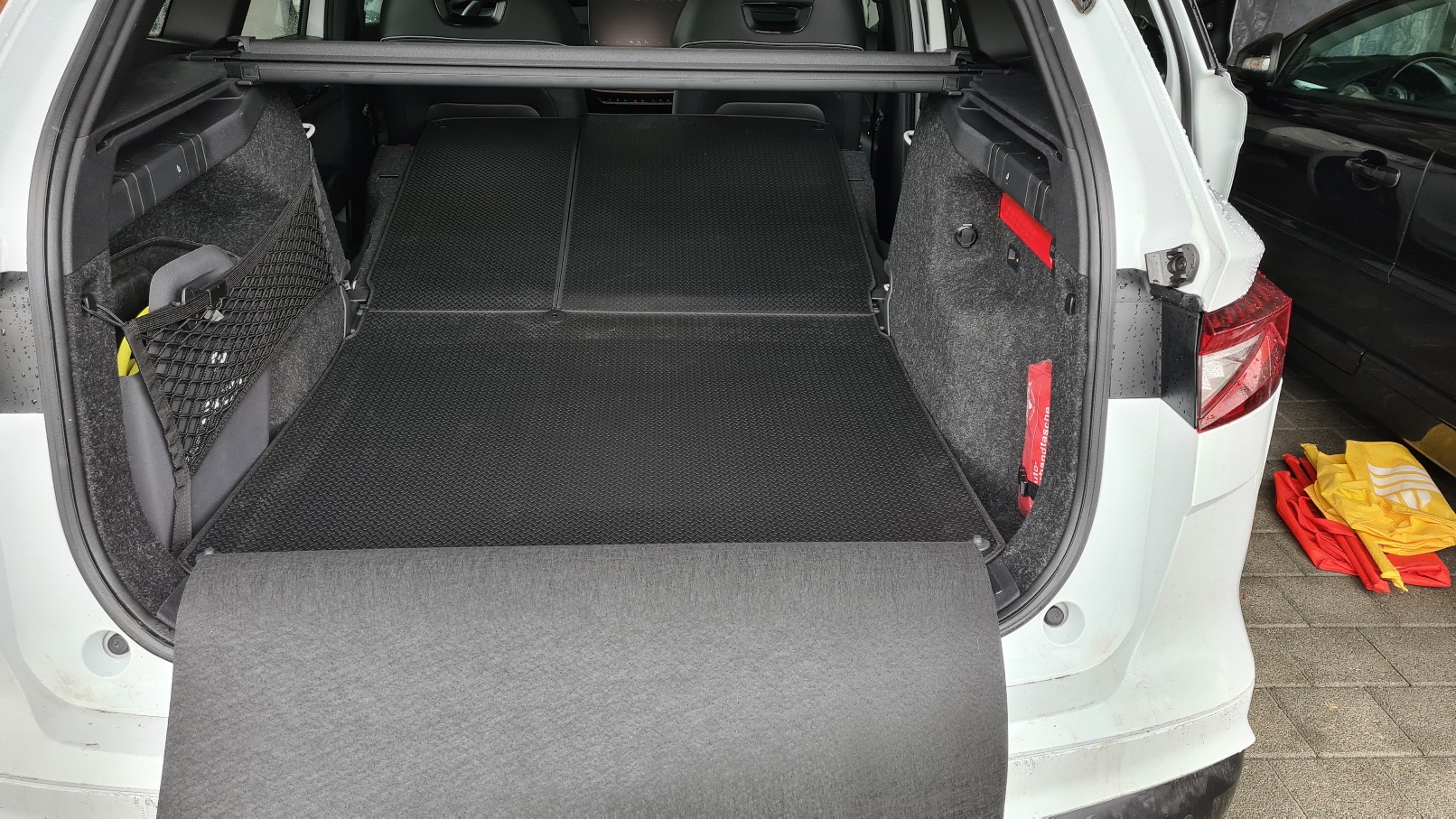 Hier plane ich den Einsatz meiner Jeep-Wendematte aus meinem verkauften Cherokee. Habe allerdings noch nicht gemessen. Aber diese noch neuwertige Matte mit Teppich- und Gummiseite fand ich so praktisch und ansehnlich, dass ich sie beim Verkauf des Jeep behalten habe, auch wenn ich davon ausgehe, dass der Kofferraum beim Enyaq etwas größer ist.